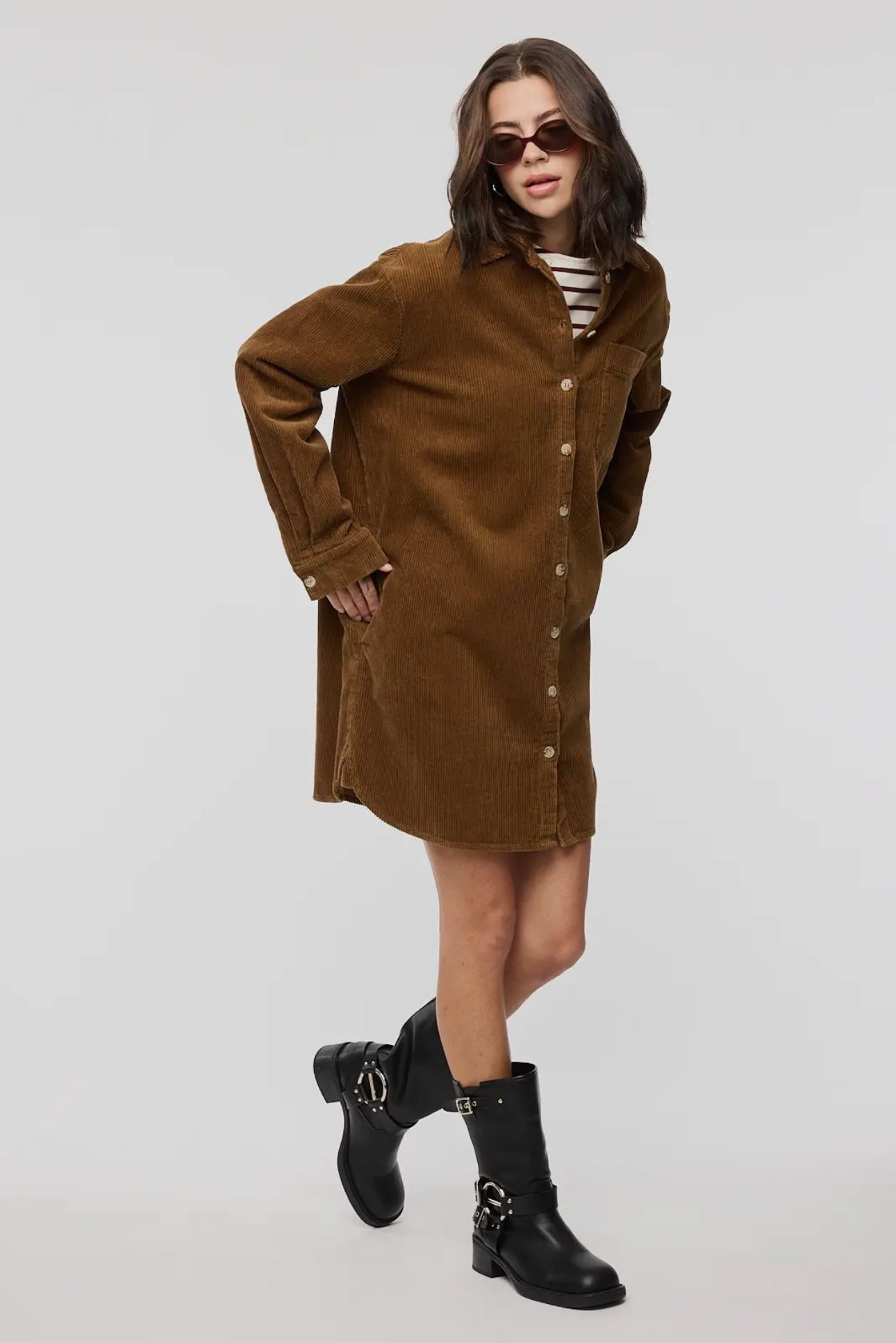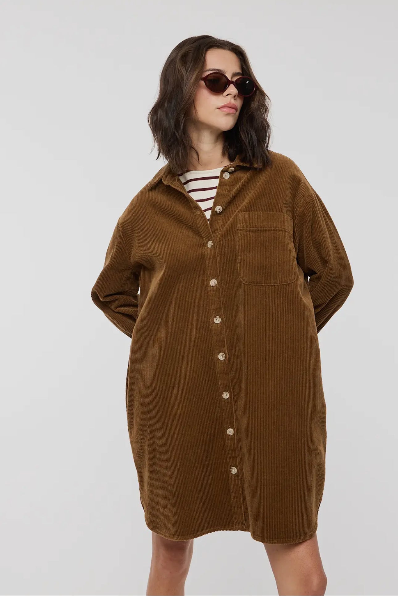 Denim Button Down Pleated Midi Shirt Dress