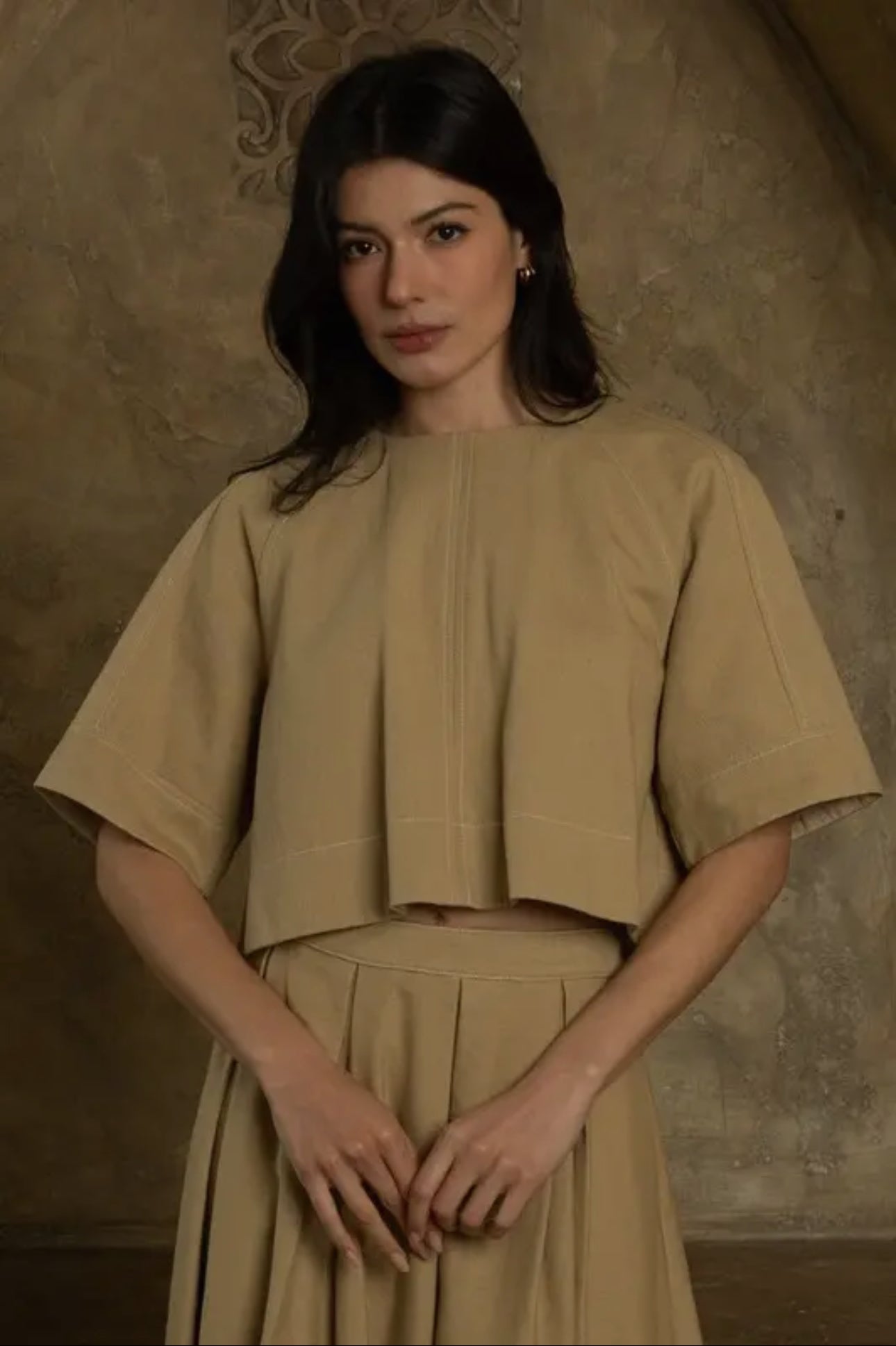 Picnic Crew Mid Socks Oatmeal Brown Check